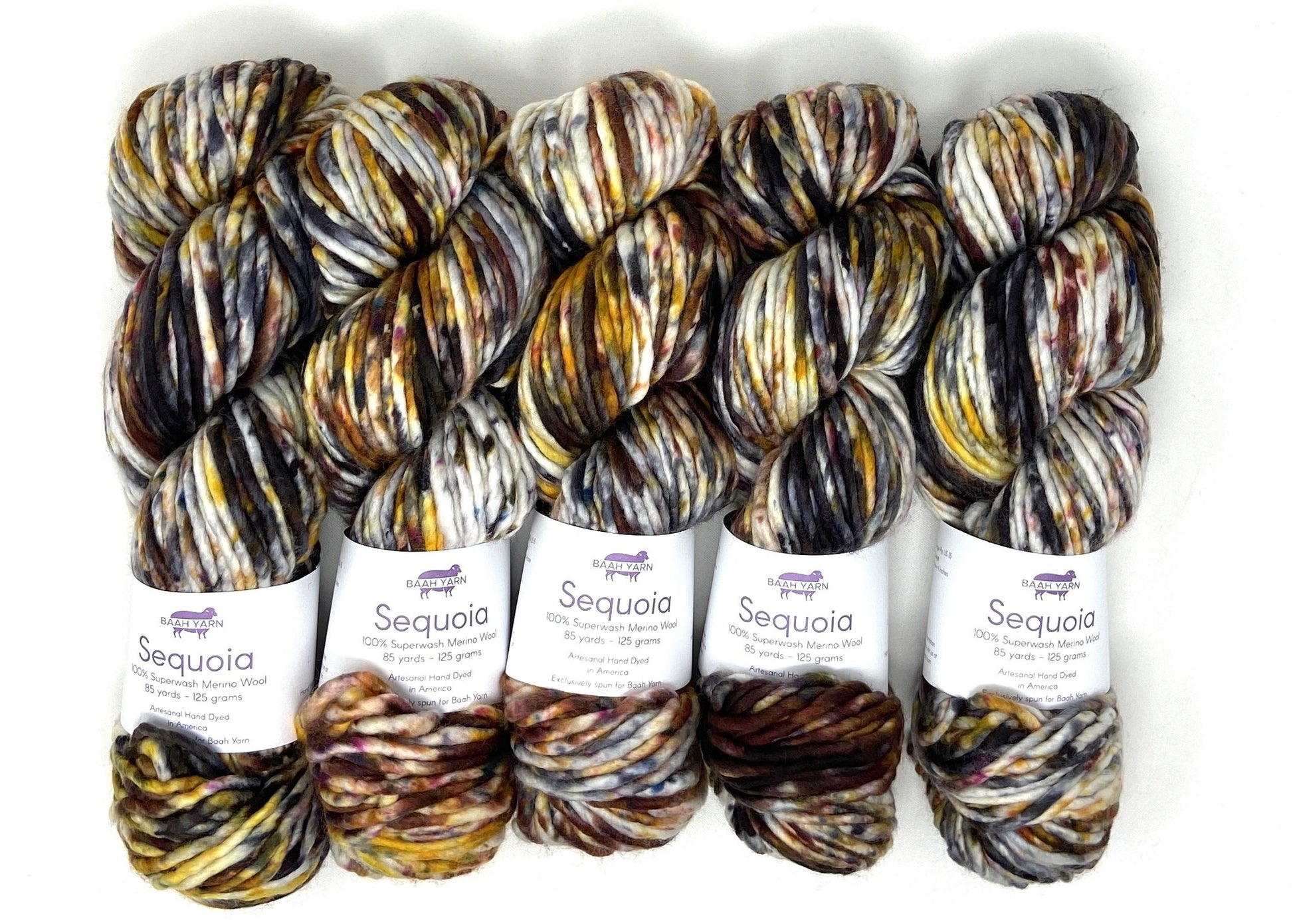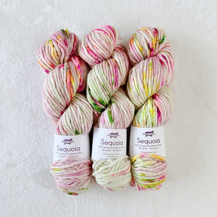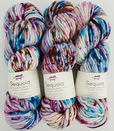 Sequoia is the super bulky merino hand-dyed yarn of your dreams! It's so soft, with Baah! Yarns' rich colors, in superwash merino; perfect for beautiful gifts that need to be created really, really, really quickly.