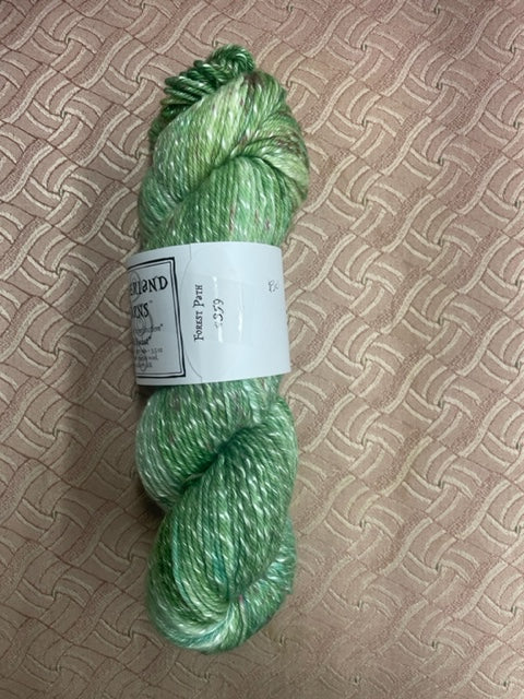 This lofty DK is slightly thick and thin, wrapped with a strand of silk. The silky absorbs dye differently for a pretty highlight throughout.